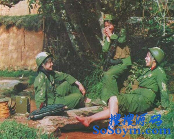 图为:对越反击战中的女兵在休憩